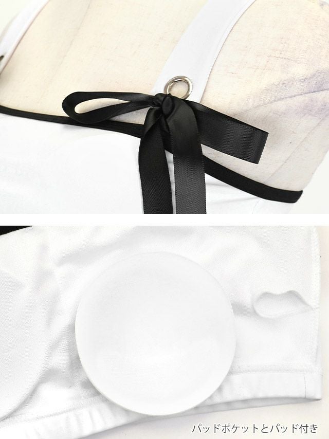 水着 クロスストラップ サテンリボンパイピング ビスチェ ギャル ビキニの詳細アップ