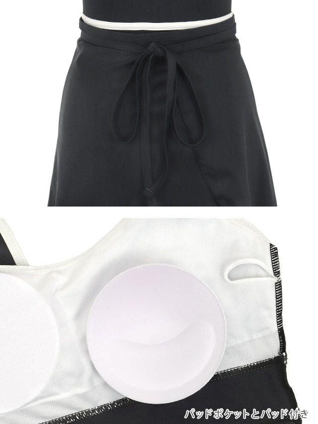 2Wayの着こなしを楽しめる♪ SALE 水着 パレオスカート付き パイピング ガーリー 2way モノキニ ビキニ (ブラック/早河ルカ着用)