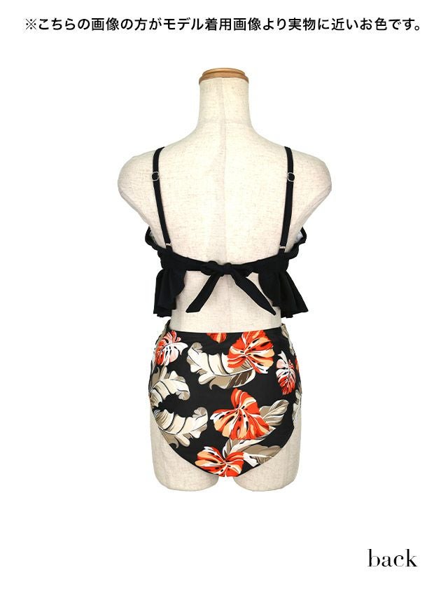 5. 水着 ストリングフリルビスチェ×ハワイアンリーフ柄ガーリーハイウエストタンキニ
