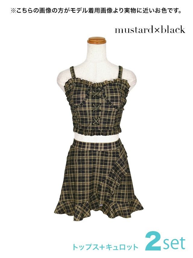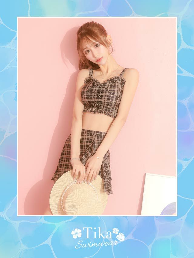 ビスチェ×スカートフリルガーリーチェックセットアップビキニの色展開