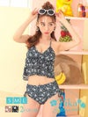 3. 水着 小花柄体型カバーペプラムビスチェハイウエストガーリータンキニ