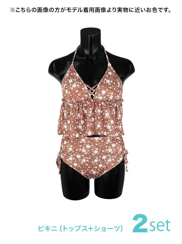 ガーリー小花柄ホルターネックペプラムビスチェハイウエストビキニのセット内容