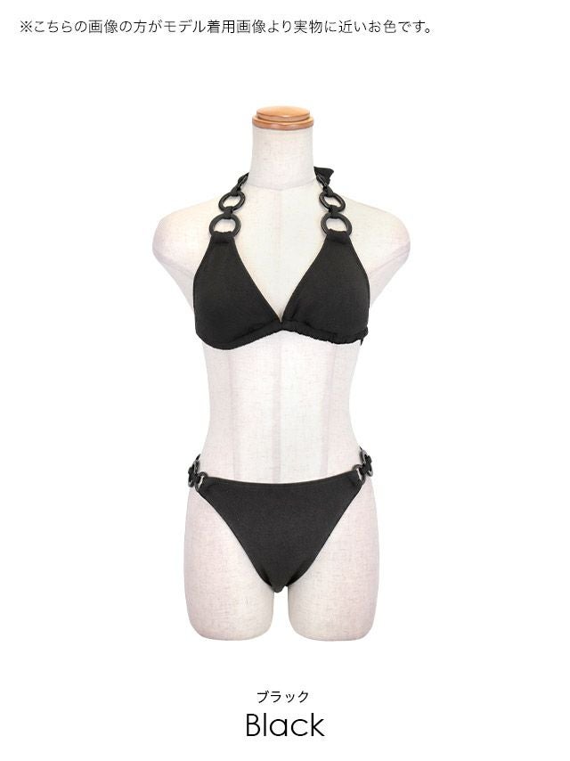 水着 チェーンリングデザインブラジリアンホルターネックセクシー三角ビキニの色展開