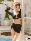 2wayショートクロスビジューロングスリーブ&ドロストミニスカート付き体型カバーギャルビキニの色展開