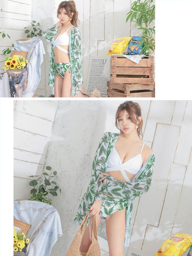 3. 水着 リーフガウン付きクロスセクシービキニ
