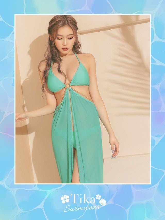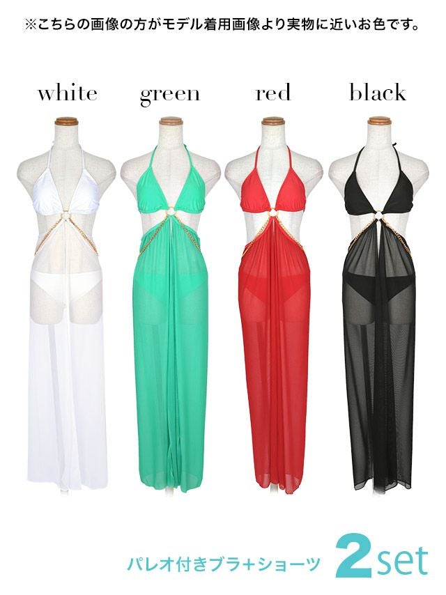 水着 チェーンパレオ付き体型カバーセクシー三角ビキニ