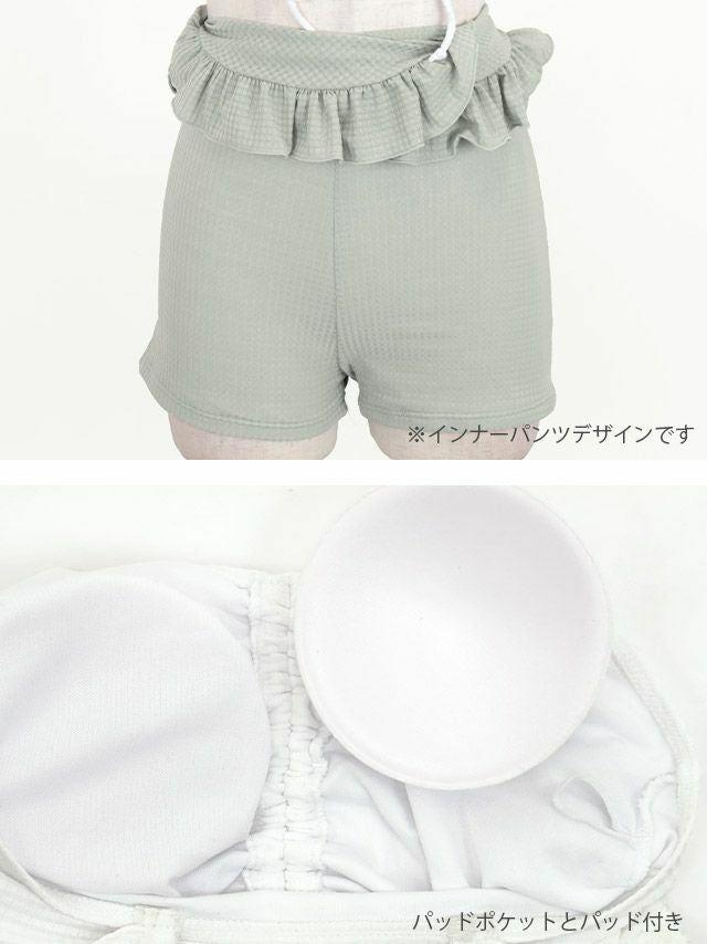 2/5再入荷★着心地抜群な盛れるガーリー水着♪ [水着] ホルターネック 体型カバー バストクロス ワッフル素材 シンプル スカートタイプ ガーリー ビキニ 白 ホワイト Lサイズあり 大きいサイズ (聖菜着用) [tk-sw18224a]