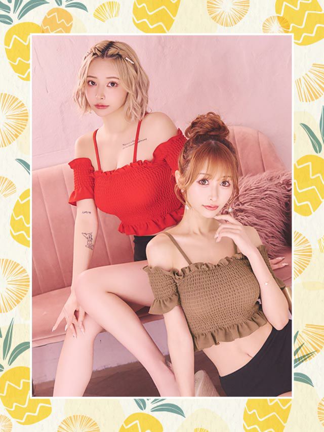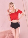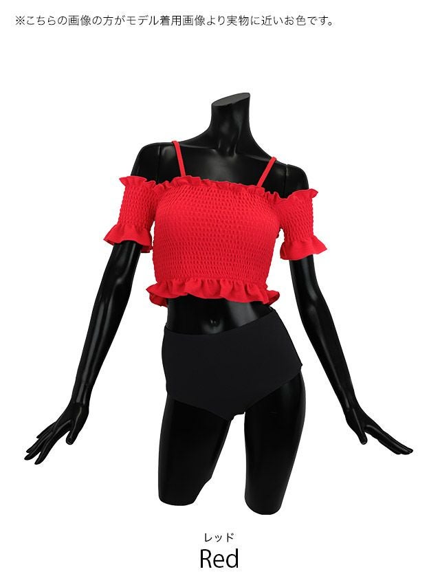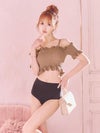 オフショルシャーリングビスチェ体型カバーガーリーハイウエストビキニの色展開