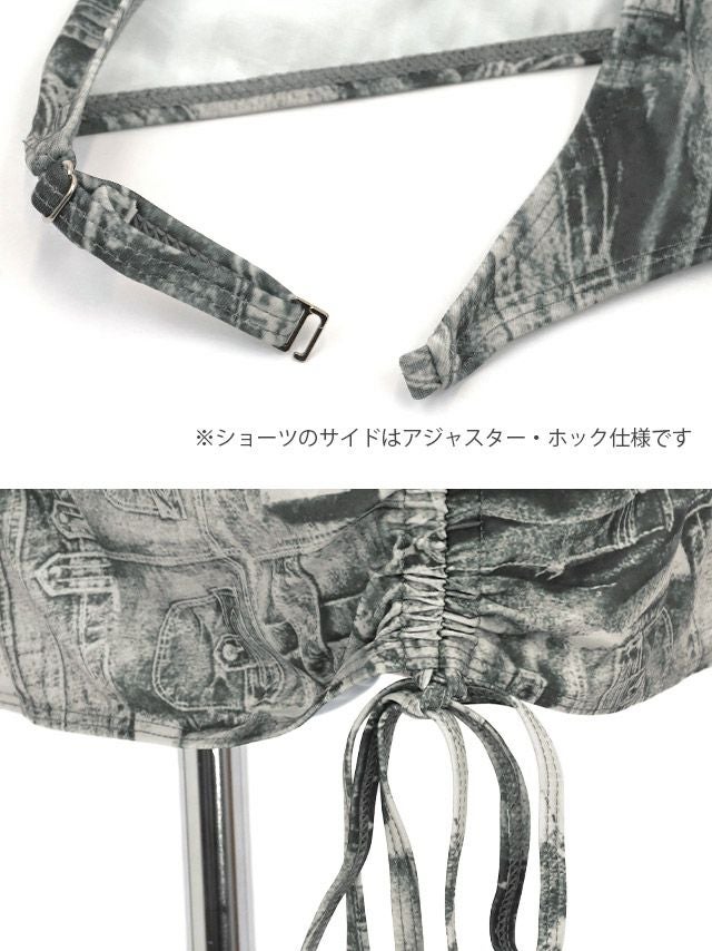5. SALE 水着 2way タンキニ バンドゥ ドロスト レースアップ デニムプリント 体型カバー スカート ギャル ビキニ (デニムプリント/MIYABI着用)