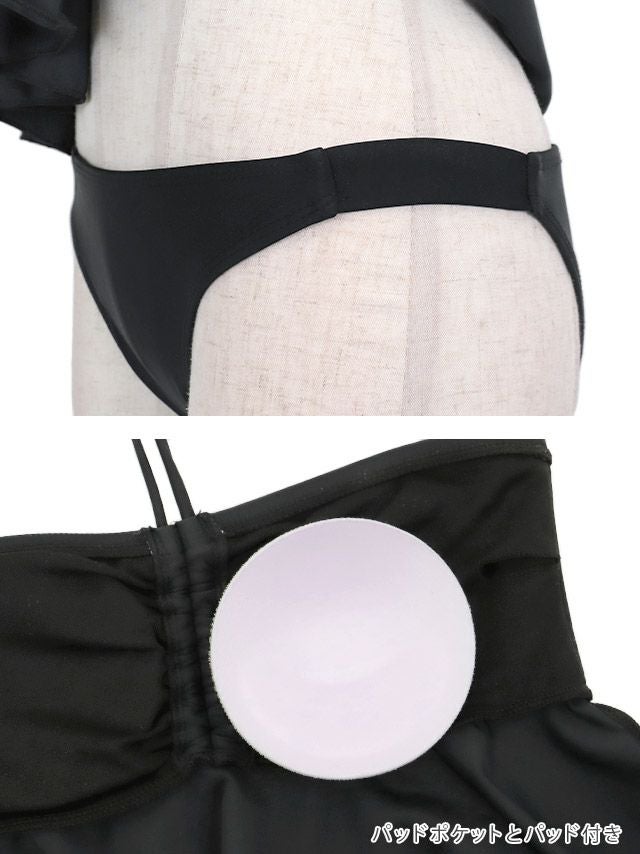 4. SALE 水着 ホルターネック フリル フレア ビスチェ ワンカラー 体型カバー 韓国風 ビキニ (ブラック/MIYABI着用)