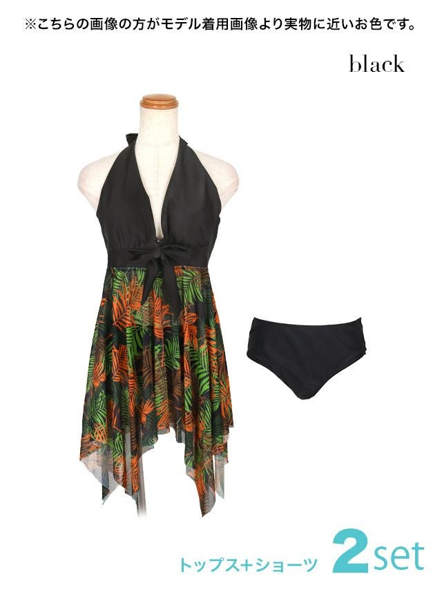 リーフ柄チュニックホルターネックビキニのセット内容