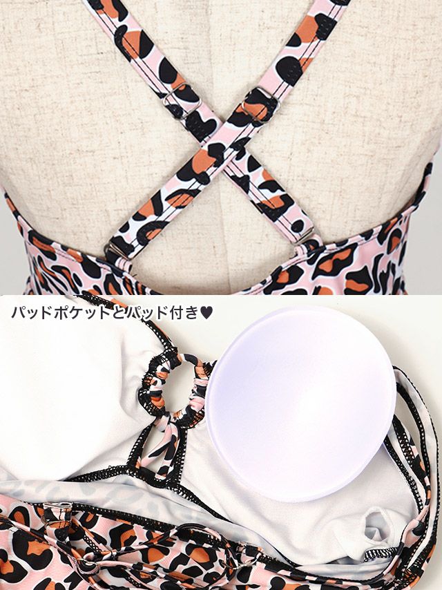 無地&総柄アシメチュニックワンピースビキニの詳細アップ