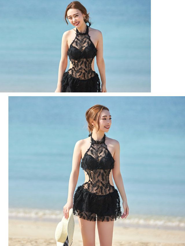 セレブなオーラー放つワンピース水着♪ 水着 ハイネックシースルーフェザー体型カバーモノキニセクシーハイネックビキニ