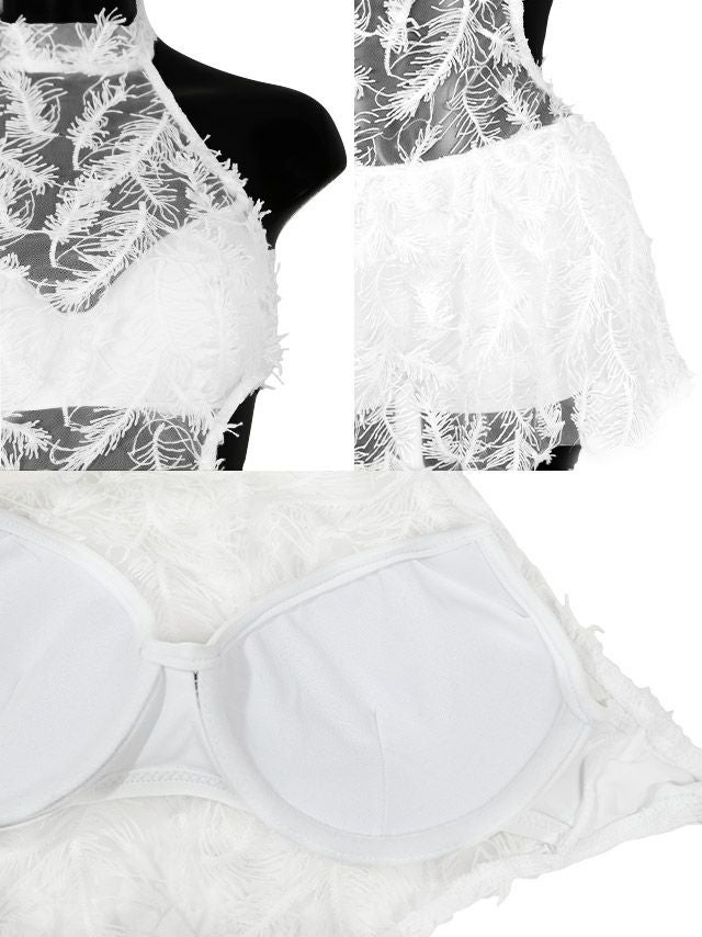 シースルーフェザーモノキニハイネックビキニのセット内容