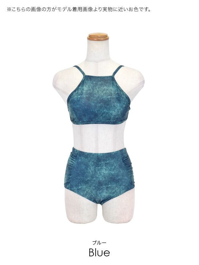 水着 ストレッチ デニム アメリカンスリーブ ハイウエスト ギャル ビキニの色展開