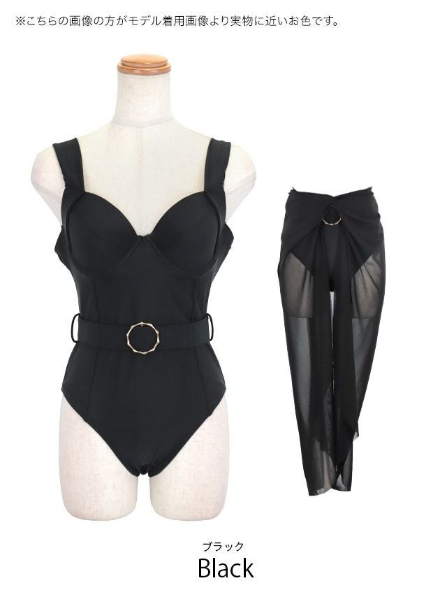 シアースカート付きウエストベルトモノキニビキニ&ホルターネックビスチェスカートタンキニギャル水着のイメージ画像1