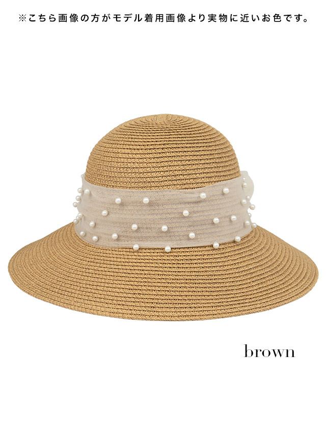 5. 水着小物 シアーパールリボン付きペーパーストローハット
