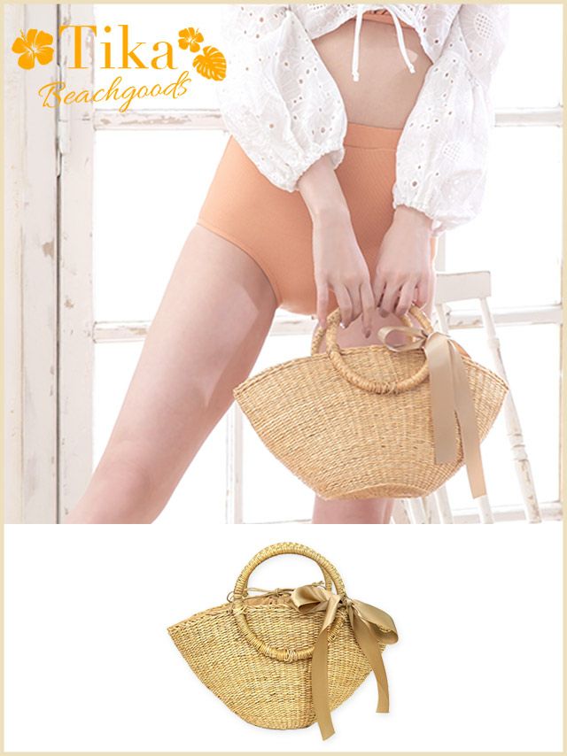 5. 水着小物 リボン付きリングハンドルかごバッグ