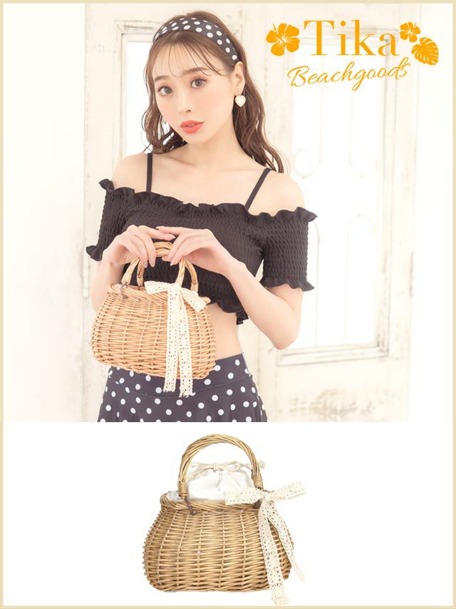 5. 水着小物 レースリボン付きラウンド型かごバッグ