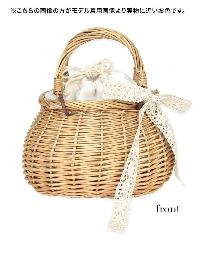 レースリボン付きラウンド型かごバッグ