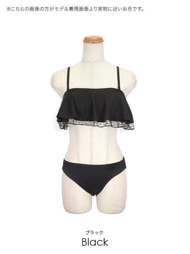 3. [水着] ギンガムチェック フリル モノキニ バックレースアップ ワンピース ドット柄チュール ブラック 黒 フレンチガーリー ビキニ (せいせい/あいみ着用) [tk-swsq19003]
