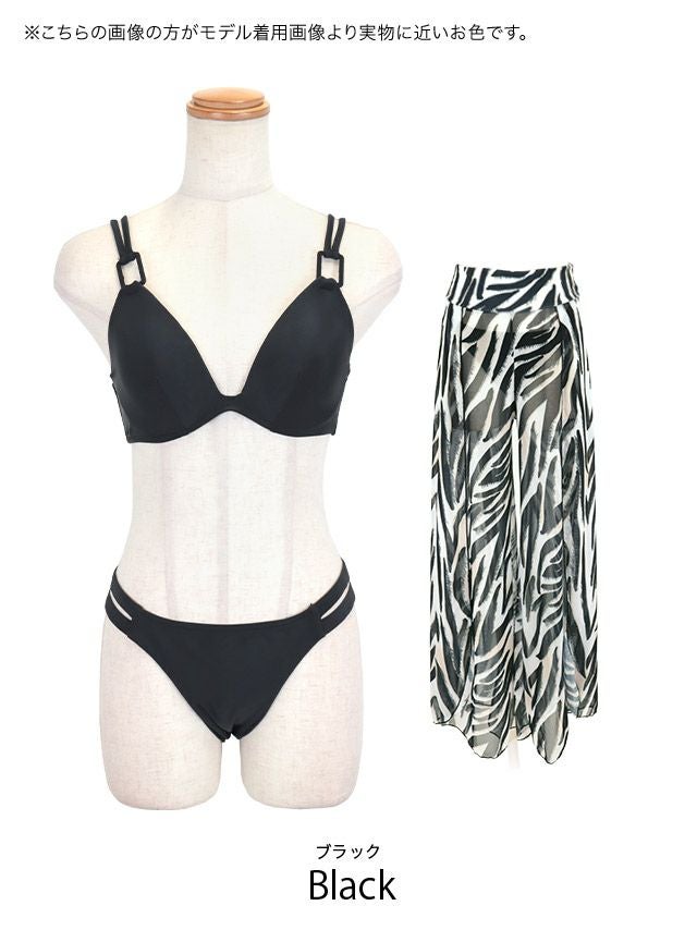 3. 水着 2wayパレオ付きハイネックリーフビスチェ体型カバービキニ&ゼブラ柄パレオパンツ付き三角ギャルビキニ