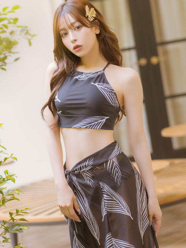 リーフ柄水着は巻き方をアレンジできる