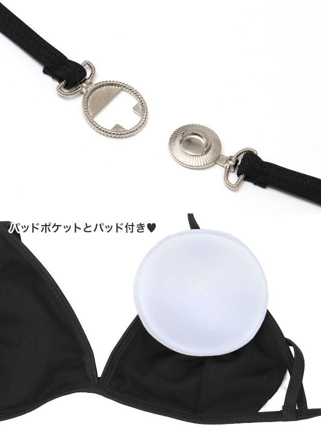 5. [水着] モノグラム 幾何学 総柄 セクシー ウエストマーク クロス ストラップ 紐 ギャル 海外 黒 ブラック 白 ホワイト 三角ビキニ (せいせい着用) [tk-sw222a]