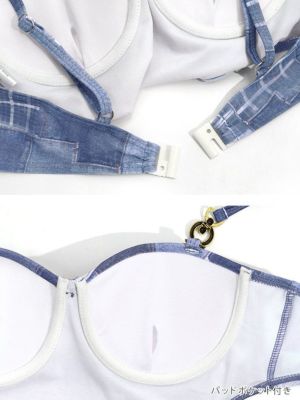 水着 ストレッチ デニム ギャル モノキニ ウエストリボン カットアウト ビキニのバッグ画像