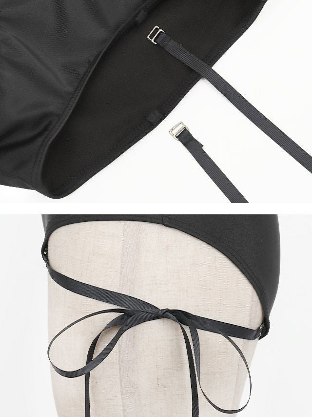 コードリボンを飾った個性的ディティール♡ SALE 水着 コードリボン 三角スカーフ ビスチェ 体型カバー ワンカラー 韓国風 ギャル タンキニ (ブラック/早河ルカ)