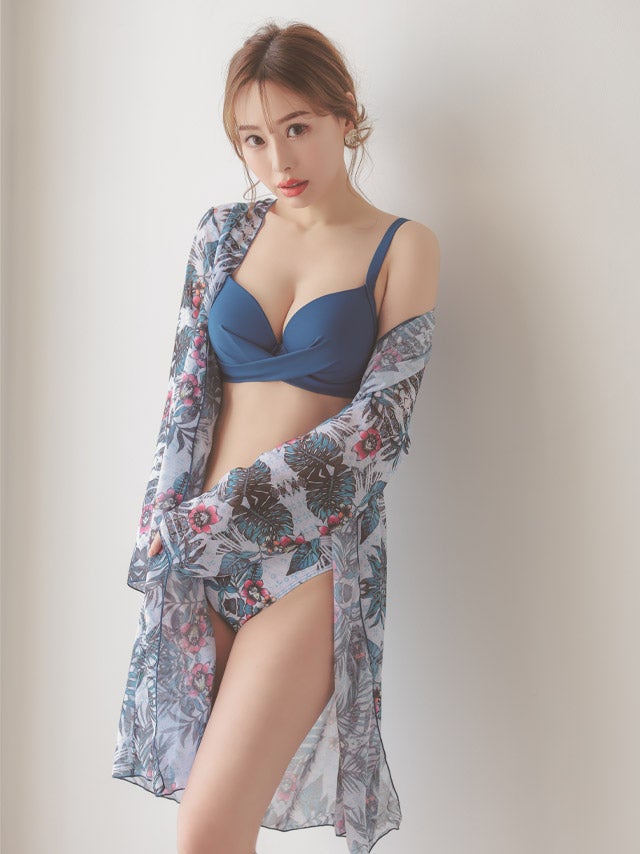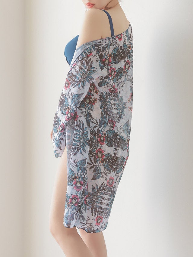水着 2wayシフォンガウン付きセクシーボタニカル柄ビキニ