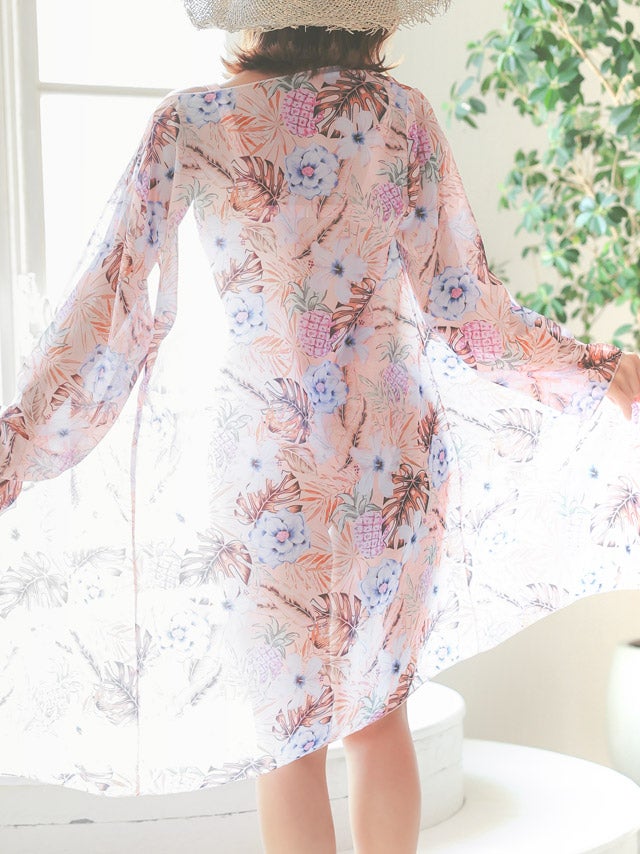 シフォンガウン付きボタニカル柄ビキニのイメージ画像1