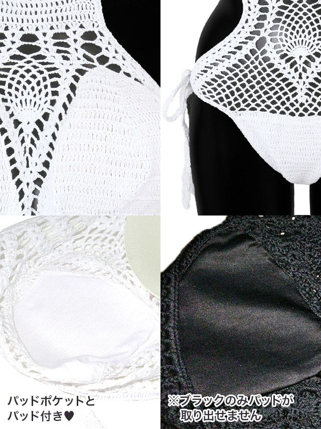 クロシェレースモノキニハイネックビキニの詳細アップ