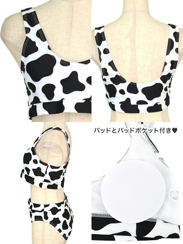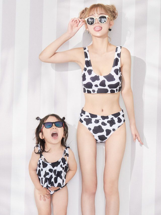 遊び心満載な映えペア水着♪ 水着 モノトーンモウ柄お揃いタンキニ