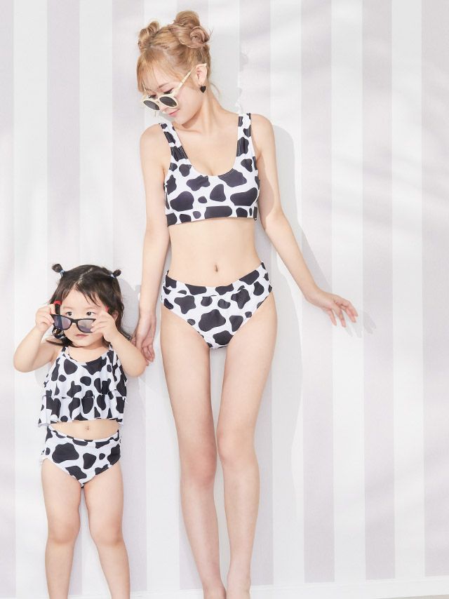 4. 水着 モノトーンモウ柄お揃いタンキニ