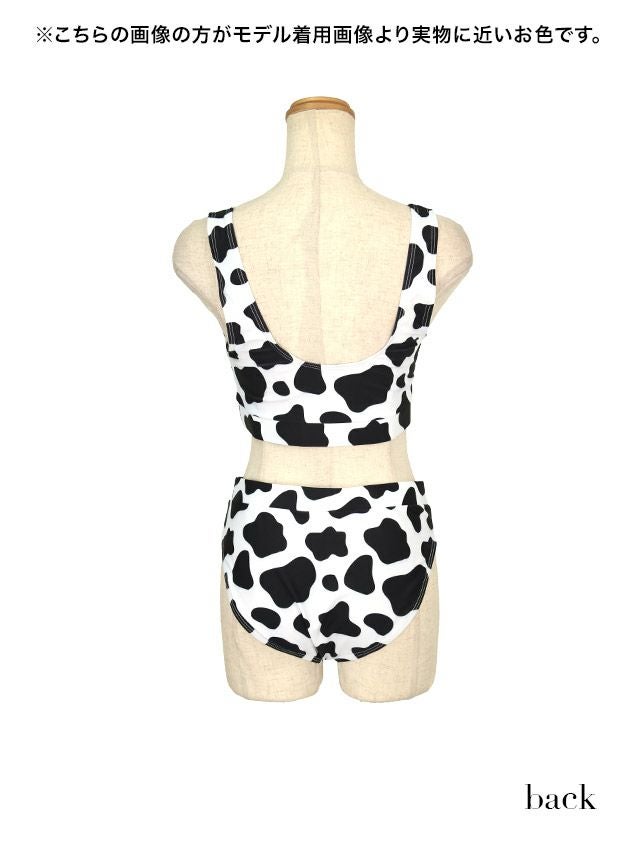 遊び心満載な映えペア水着♪ 水着 モノトーンモウ柄お揃いタンキニ