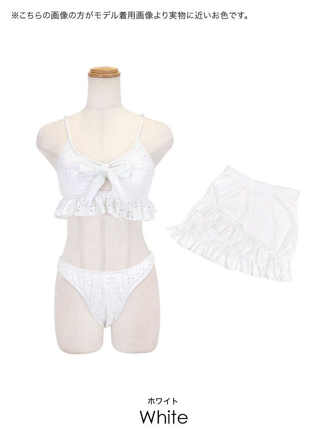 水着 エンブロイダリー レース リボン 体型カバー フリル ラップスカート 韓国風 ガーリー タンキニのイメージ画像1