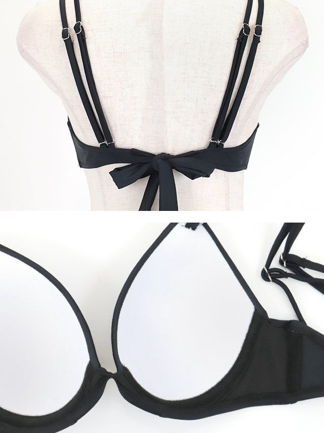 バストをしっかりと支えてくれるので 大きいお胸さんも安心してご着用していただけます! ホルターネックでしっかり安定させて谷間も強調◎ 谷間を活かしたい方にオススメの水着デザインです!