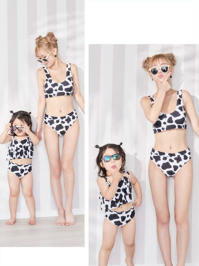 遊び心満載な映えペア水着♪ 水着 モノトーンモウ柄お揃いタンキニ