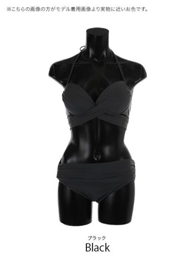 水着ワンカラークロスデザインホルターネックビキニの色展開
