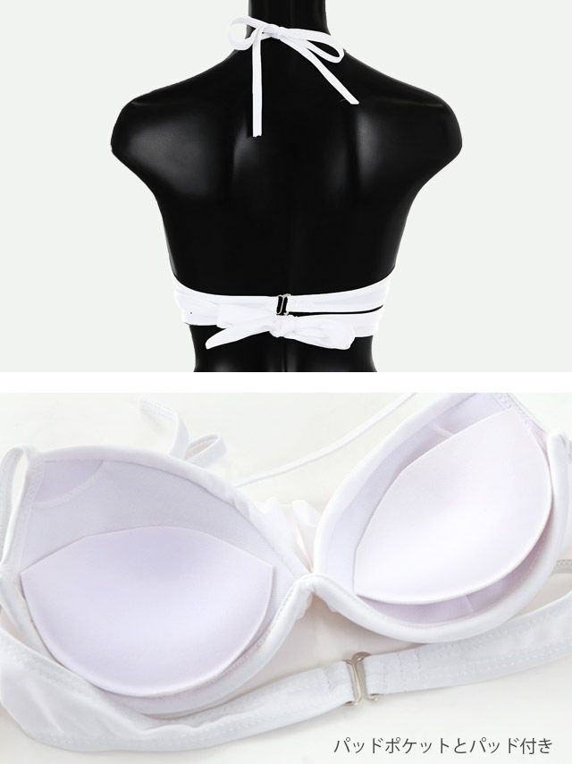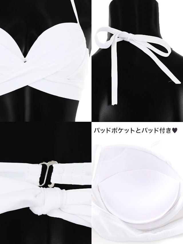 水着ワンカラークロスデザインホルターネックビキニの詳細アップ