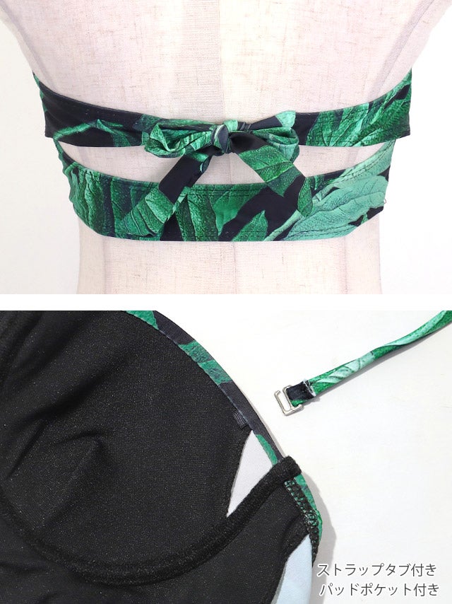 4. [水着] ビスチェ ホルターネック ハイウエスト リーフプリント カジュアル ギャル グリーン ブラック Lサイズあり 大きいサイズ カジュアル ビキニ (KATOMIKA着用) [tk-sw2131]