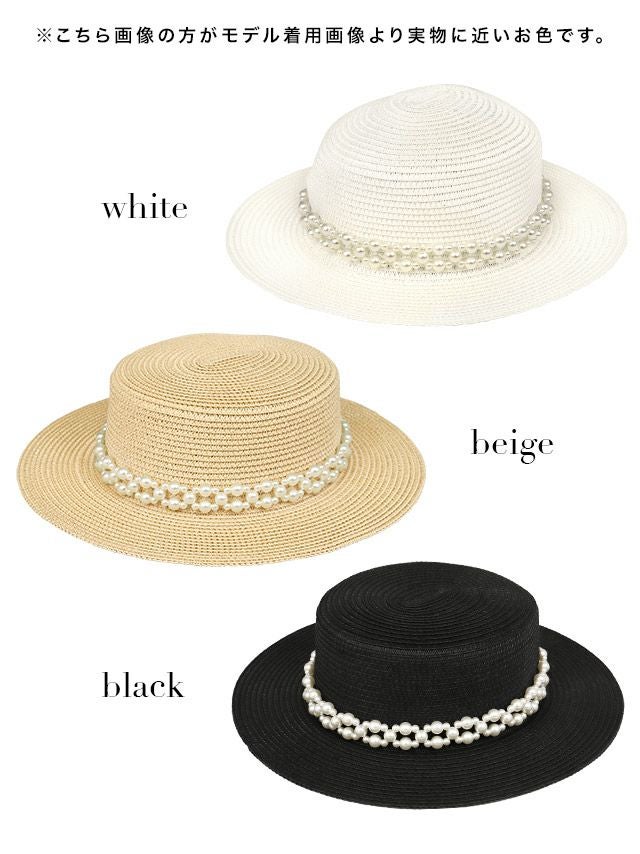 パール付きペーパーストローハット