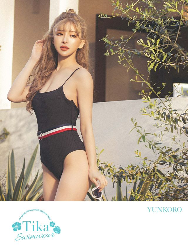 水着トリコロールカラーベルト付モノキニワンピースビキニの色展開