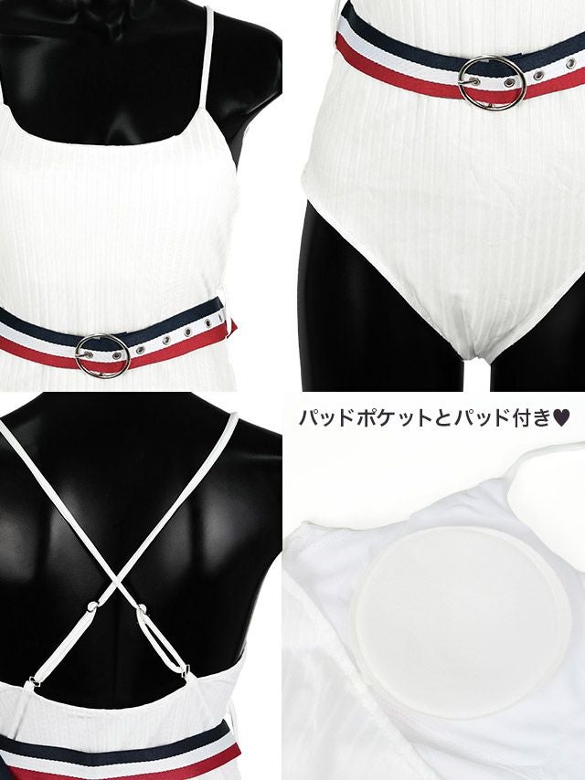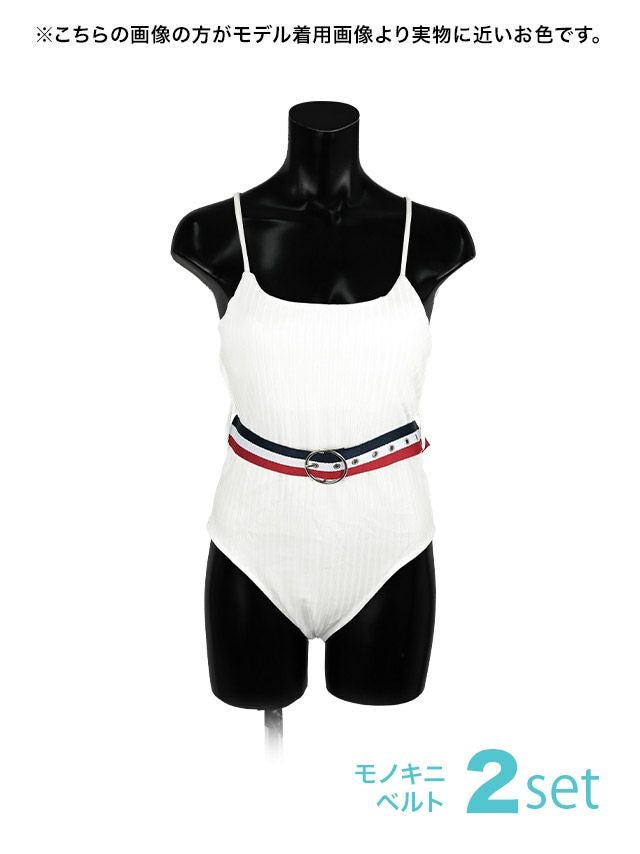 トリコロールカラーベルト付モノキニワンピースビキニのセット内容