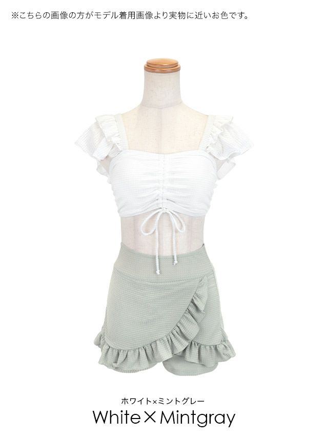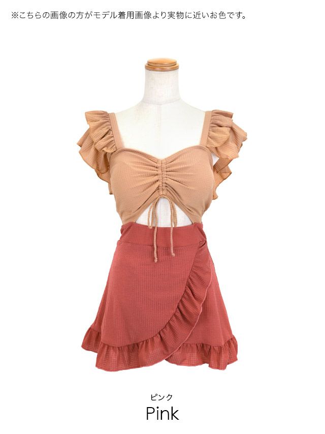 水着 バストドロストビスチェ&カットアウトフレアスカートガーリー体型カバーフリルビキニの色展開