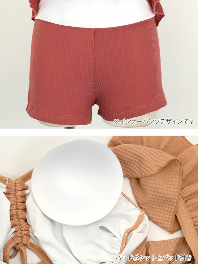 3. 水着 バストドロストビスチェ&ワンピースウエストカットアウトフレアスカート韓国風体型カバーフリルビキニ
