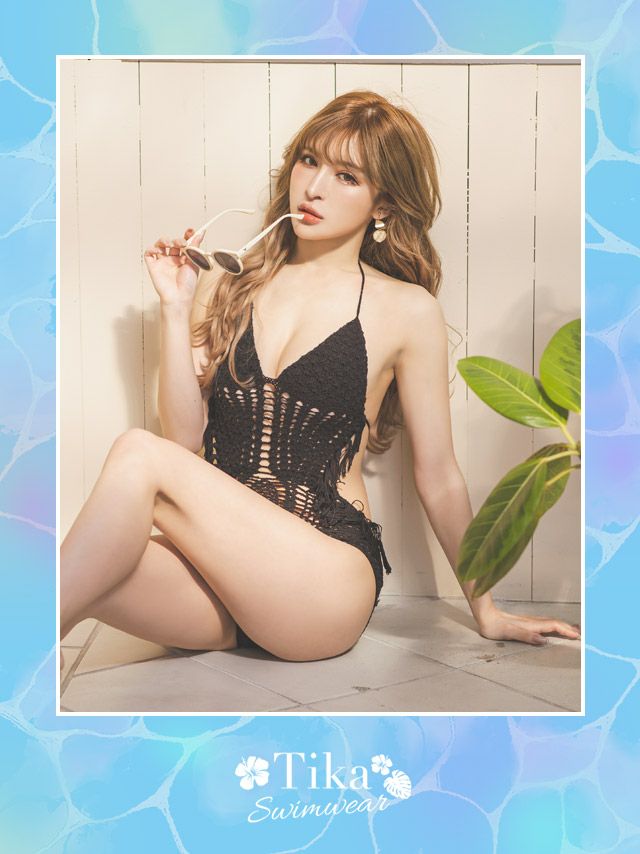 3. [SALE] 水着 モノキニ ワンピース クロシェ かぎ編み フリンジ カットアウト 体型カバー お腹カバー 背中見せ セクシー ギャル ボヘミアン インポート風 (ゆんころ着用) [tk-swyx054]
