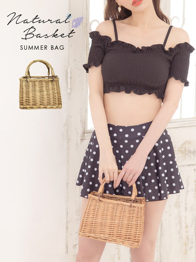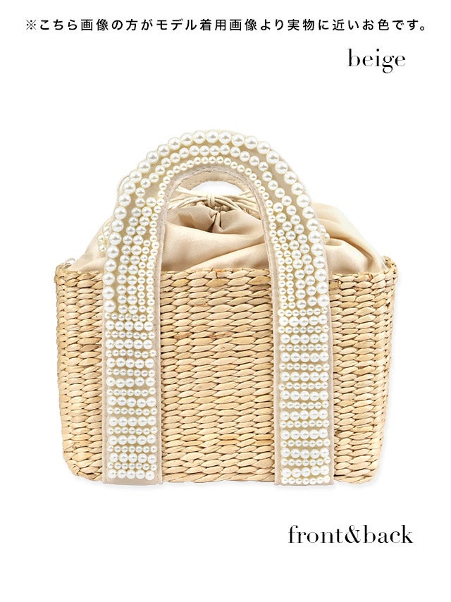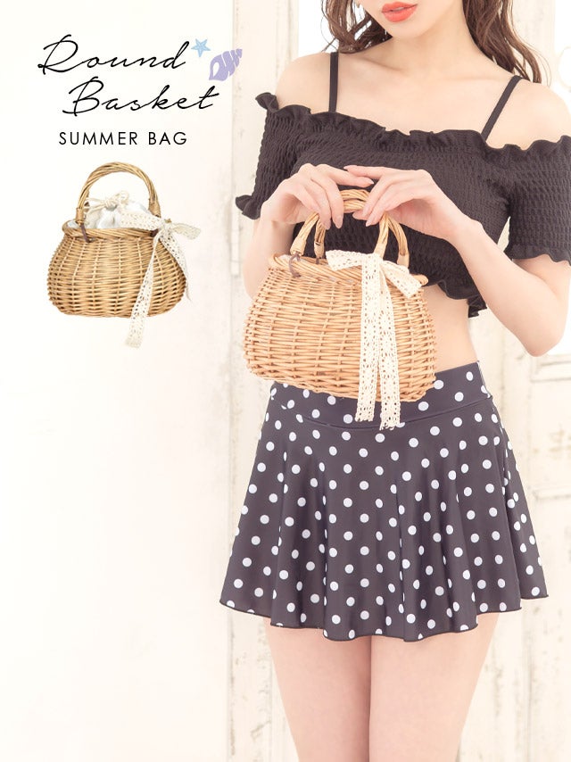 お好みの形を選べる♪ [水着小物] 選べるラウンド型&スクエア型パールハンドルレースリボンかごバッグ