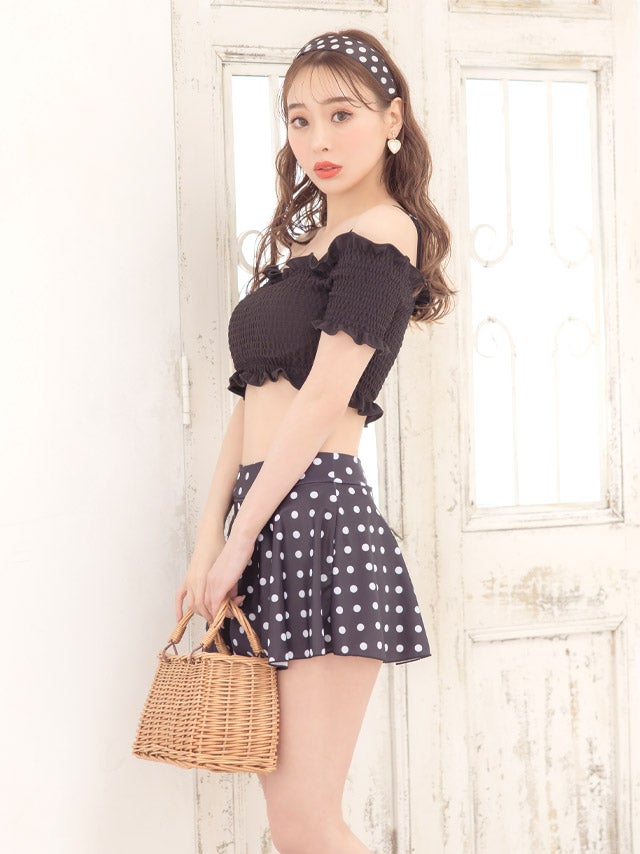 risa_smash ★★★★★ 日焼けがちょっと気になるから、カバーとスカート付きの4点セットにしたんだけど...着てるとガーリー寄りで安心感あるし、脱いだら一気に王道の黒水着って感じでギャップが良すぎた😭